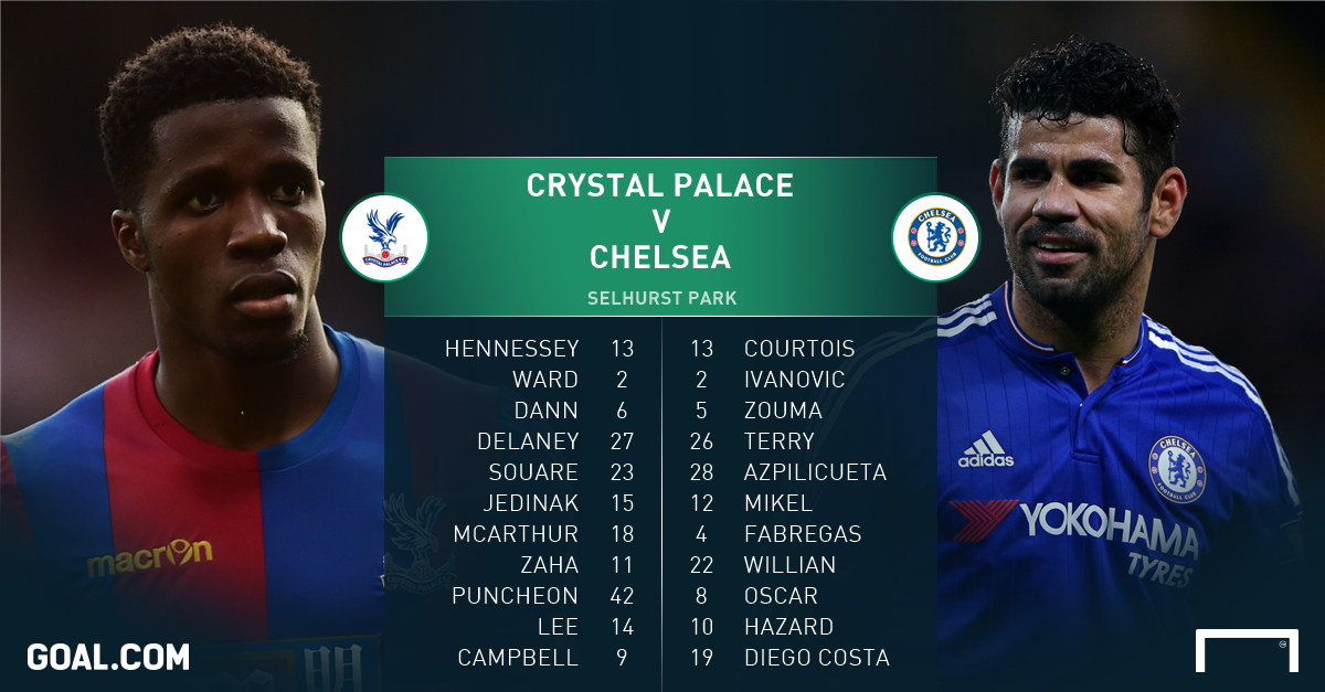 Diego Costa and Cesc Fabregas return to the Chelsea starting XI for Sunday's trip to Crystal Palace, as the Blues looking to continue their recent unbeaten streak.Guus Hiddink was forced to play without a recognised striker against Manchester United last time out, with Costa suspended and Loic Remy and Radamel Falcao both injured, but a 0-0 draw at Old Trafford meant the club went three games unbeaten since Jose Mourinho was axed.